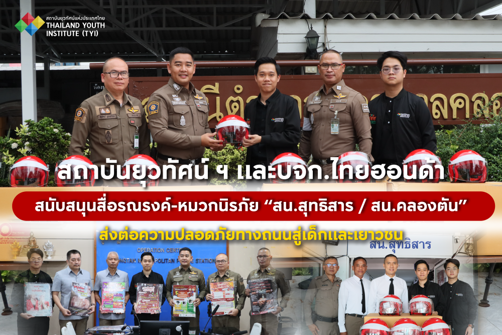 เมื่อวันที่ 27 ตุลาคม 2568 สถาบันยุวทัศน์แห่งประเทศไทย และบริษัท ไทยฮอนด้า จำกัด นำโดยนายพชรพรรษ์ ประจวบลาภ เลขาธิการสถาบันยุวทัศน์แห่งประเทศไทย มอบหมวกนิรภัย (สำหรับเด็กระดับชั้นประถมศึกษา) จำนวน 40 ใบ พร้อมกับสื่อรณรงค์ประเด็นความปลอดภัยทางถนนและบุหรี่ไฟฟ้า เพื่อใช้สนับสนุนการดำเนินงานในพื้นที่ ตลอดจนได้มีการหารือถึงแนวทาง บูรณาการความร่วมมือในการดำเนินกิจกรรมมิติต่าง ๆ ต่อในพื้นที่ เช่น การสื่อสารการบังคับใช้กฎหมายเชิงบวก, อบรมสร้างองค์ความรู้เทคนิคการขับขี่ปลอดภัย, ปรับสภาพแวดล้อมจราจรในพื้นที่ซึ่งเป็นจุดเสี่ยงให้เกิดอุบัติเหตุทางถนน เป็นต้น